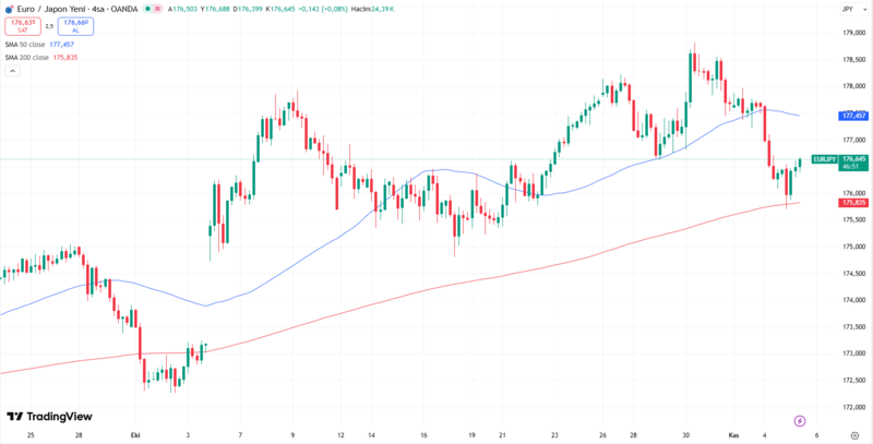 EUR/JPY paritesi, Çarşamba günü 176,50 civarında dengelenerek günü %0,10 artışla geçiriyor. Gün içinde 175,70 seviyesine kadar gerileyerek son iki haftanın en düşük seviyesini görmüştü. Bu düşüşte, küresel piyasalarda artan riskten kaçış eğilimiyle birlikte yatırımcıların güvenli liman olarak Japon Yeni’ne yönelmesi etkili oldu.