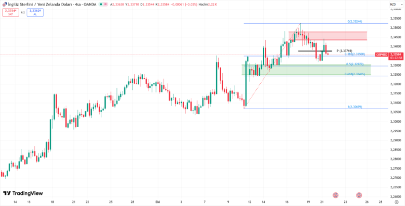 Fiyat, 2.3377 seviyesindeki Pivot noktasının hemen altında işlem görüyor, mevcut geri çekilmenin 2.3290-2.3240 aralığındaki destek bölgesine kadar devam etmesi beklenebilir. Bu alan, aynı zamanda %50 ve %61,8 Fibonacci seviyeleriyle örtüşerek güçlü bir alım potansiyeli sunuyor. Bu bölgede alım tepkisi ve boğa mum formasyonlarının oluşması hâlinde fiyatın yeniden 2.3450-2.3500 direnç bölgesine yönelmesi ve yükseliş trendine devam etmesi muhtemel.