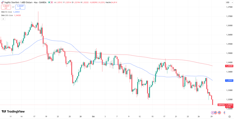 Sterlin, Çarşamba günü Avrupa seansında ABD Doları karşısında yaklaşık üç ayın en düşük seviyesine gerileyerek 1,3230 civarında işlem görüyor. GBP/USD paritesi, ABD Dolar Endeksi’nin (DXY) yükselişi ve İngiliz para birimindeki zayıf görünümün etkisiyle düşüş eğilimini sürdürüyor.