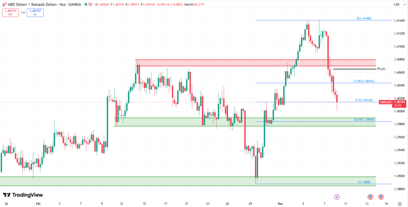 Fiyat, 1.4014 seviyesindeki %50 Fibonacci düzeltme bölgesinden tepki alımı göstermeye başladı. Bu alan, son yükseliş dalgasının orta noktası olup kısa vadeli alıcı ilgisinin yoğunlaştığı teknik bir eşik olarak öne çıkıyor. Tepki hareketinin devam etmesi halinde fiyatın 1.4044 (%38.2 Fibo) ara direncini test etmesi sonrasında ise 1.4075-1.4080 pivot bölgesine doğru yükseliş denemeleri yapması beklenebilir.